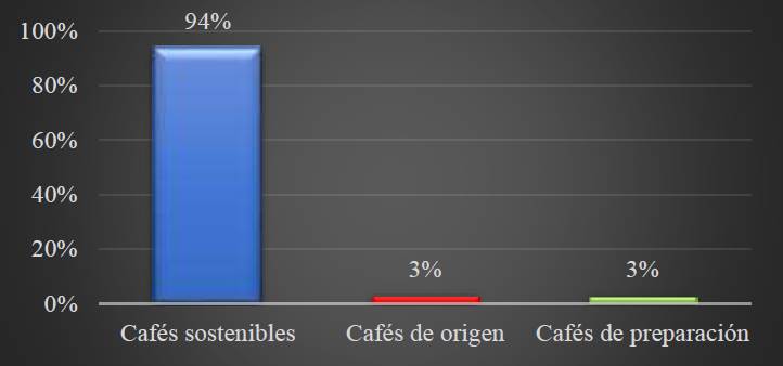 | Sostenibles: son aquellos cultivados por comunidades que tienen compromiso con la protección del medio ambiente. | Cafés Orgánicos | Son los cafés que no utilizan fertilizantes, químicos ni pesticidas, al igual buscan proteger los suelos |