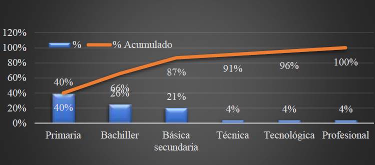 Figura 4 Pareto nivel educativo de los caficultores de la zona región centro del departamento del Cauca.