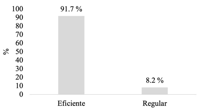 Además, la mayoría presentó PPIRA eficientes (91.7 %), mientras que solo 8.2 % de las madres o cuidadoras principales de niños menores de cinco años mostró un nivel regular, (Figura 1).
