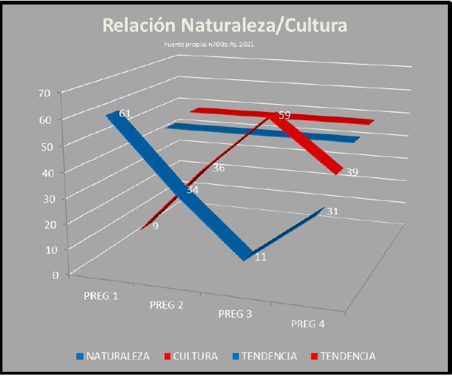 En resumen, al analizar en conjunto todas las respuestas, encontramos que las acciones de cuidado hacia otra persona nos presentan un escenario de equilibrio entre aspectos naturales (49%) y culturales (51%).