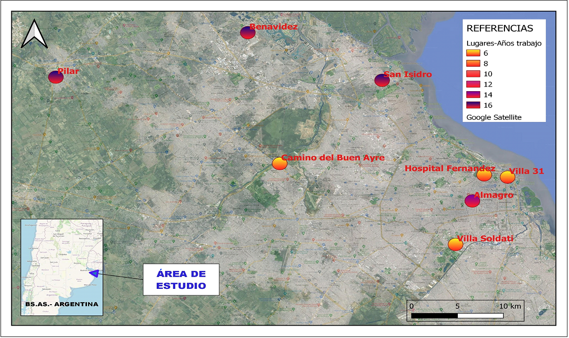 Figura 1 Mapa de las áreas de estudio. Recorrido espacial y temporal.