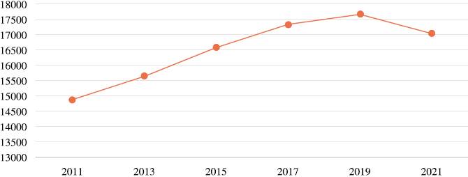 El PIB permite comparar la actividad económica de los distintos países o estados y sirven como referencia para análisis económicos y toma de decisiones gubernamentales. En la Figura 4 se muestra el PIB de México para el periodo 2011-2021. Como se observa en la Figura 4, el PIB creció desde el año 2011 hasta el 2019; para el año de 2020 tuvo una disminución. Esta caída puede ser explicada por el inicio de la crisis del COVID-19 misma que reportó INEGI. Esta instancia pronosticó que el decremento del PIB en México para el 2020 sería de aproximadamente del 8.4% en términos reales. Además, Banxico indicó que los cambios derivados por la pandemia afectaron a la oferta y al financiamiento externo. La reducción está asociada a la incertidumbre de los inversionistas extranjeros y la disminución de los precios de las materias primas (Banco de México, 2020).