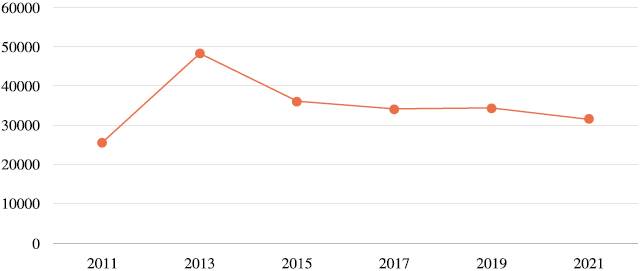 La Inversión Extranjera Directa es aquella que tiene como propósito crear un vínculo duradero con fines económicos y empresariales de largo plazo, por parte de un inversionista extranjero en el país receptor. En la Figura 7 se muestra la IED nacional durante el periodo 2011-2021. Como se observa, se tuvo un crecimiento de la IED en el año 2013. Dicho monto es la cifra más alta para un año, en toda la historia del indicador. Está atribuido a la adquisición de Grupo Modelo por parte de AB Inbev, en el segundo trimestre de 2013 (CEPAL, 2014). Después de este año, las cifras de la IED se vuelven más o menos homogéneas para el resto del periodo.