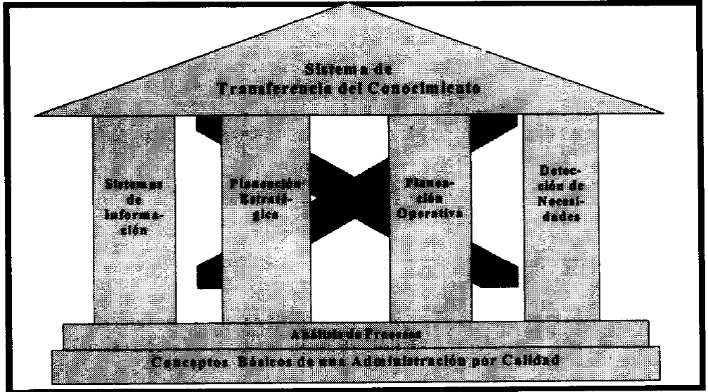 Este conocimiento corresponde al "saber haced' ("knowhow") de la Institución. Es tal conjunto de prácticas y políticas el que le da a cada organización su propia manera de hacer las cosas. En él se acumulan todos los esfuerzos altruistas y representa a su vez la manera como se traducen voluntades en hechos concretos. Es por ello que el conocimiento organizacional es el que permite la construcción aterrizada del concepto de implicar el concepto de calidad en este sistema, tenemos que asegurar que dichos procesos cuenten con la capacidad de ser administrados y mejorados.
