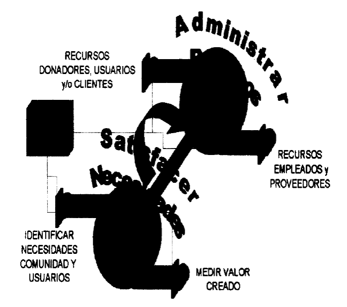 Por último, nos encontramos con el proceso de transferencia que es el eje rotor, que permite trasladar los esfuerzos que realiza el sistema de Administrar Recursos al sistema de satisfacer necesidades. En otras palabras, transfiere los recursos con que la administración cuenta, para las actividades altruistas de la Institución. En ambos casos lo que se busca es cumplir con la operación de maximización, ya sea de generación de recursos o de transformación en bienestar social.