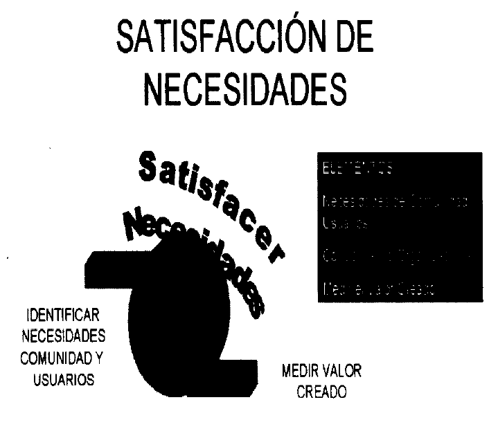 En el caso de Satisfacer Necesidades, el sistema debe centrarse en un elemento que logre la transformación deseada de recursos en beneficio social, que para este fin puede ser el conocimiento organizacional, que incluye los conocimientos "implícito", "explícito" y "cultural" (Choo,1999).