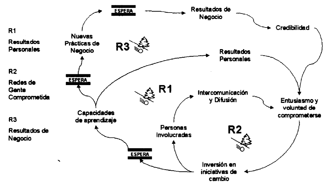 Resultados de Negocio (R3): el proceso de cambio personal y la creación de grupos comprometidos siempre genera resultados positivos para el negocio. El problema se presenta cuando la Alta Dirección no se encuentra dispuesta a aceptar los cambios que se requiere hacer al interior de la organización.