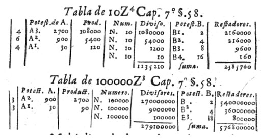Figura 1 Tablas para divisores y restadores (Zaragoza, 1669, p. 209)