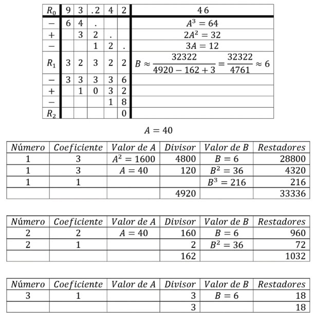 En concreto, para explicar el método se comenzó resolviendo una ecuación sencilla como ejemplo. Sea la ecuación x3-2x2+3x=93242.
