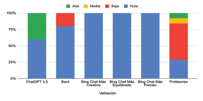 Figura 13 Validaciones matemáticas de profesores y chatbots.