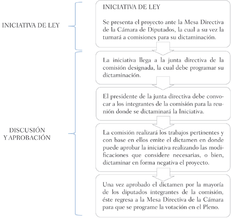 En el momento en que la iniciativa llega a la comisión dictaminadora ésta es recibida por la junta directiva de la comisión, órgano que dentro del proceso legislativo tiene la encomienda de generar el orden del día en el cual se establecen los trabajos a seguir para dictaminar dicha iniciativa. Es importante mencionar que la junta directiva es dirigida a su vez por un presidente, actor que en la práctica es el de mayor peso dentro de las comisiones, ya que además de convocar, presidir y conducir las sesiones, es el sujeto que mantiene la comunicación con la Mesa Directiva de la Cámara.