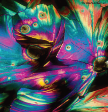 Así como los ingredientes alcohólicos -vodka, ron, ginebra o whisky- y los no alcohólicos -jarabes, frutas y hierbas frescas-, junto con el talento de un bartender, juegan un papel crucial en la base de cualquier buen coctel, unas pocas herramientas y materias primas en las manos habilidosas de una persona con sensibilidad especial para la belleza pueden abrir nuevos caminos para la creación artística y desafiar las normas del arte convencional. Tal es el caso de Lester Hutt, quien, armado con una pipeta y un microscopio de alta resolución, realizó algo muy original. Pipeta en mano, tomó una gota de diversas bebidas alcohólicas, tales como: vodka, piña colada, sake, martini, martini seco, champagne, vino tinto, refresco de cola, whiskey y chablis5.