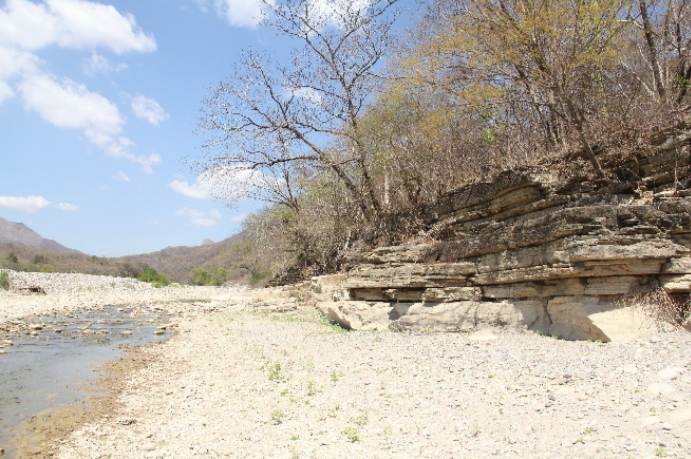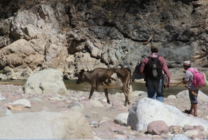 Los tipos de vegetación adyacente incluyeron vegetación riparia, selva baja caducifolia y vegetación secundaria de selva baja. Los tipos de vegetación de las partes más altas incluyeron bosque de pino-encino y vegetación secundaria de bosque de pino-encino y de encino-pino (INEGI, 2018). Dentro de la vegetación riparia, los géneros vegetales principales estuvieron Astianthus (achuchil), Ficus (higueras) y Piper (pimientas o cordoncillos), entre otros. En la selva baja caducifolia se identificaron géneros como Conzattia (guayacan), Amphipterygium (cuachalala), Bursera (palo mulato o copalillo), Ceiba (pochote), entre otros, además de arbustos, lianas y cactáceas. Para el caso de los bosques de coníferas estuvieron Pinus (pinos) y Quercus (encinos), coexistiendo con Liquidambar (liquidámbar), Arctostaphylos (manzanita) y Arbutus (Torres-Colin, 2004). Se registró pastizal inducido y agricultura de riego en las cercanías del río, pero en baja cantidad (Fig. 1).