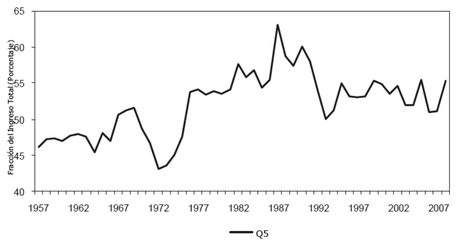 En Chile, quienes gobernaron después de la dictadura se ubican al centro-izquierda del espectro político-ideológico -exceptuando los dos periodos de Sebastián Piñera-, sin embargo, el país sigue siendo el más desigual de la región. Un estudio del Banco Mundial (2014), sostiene que la reforma fiscal de 2014 definió cambios sustanciales en el sistema tributario que favorecieron mayor equidad en la distribución del ingreso y neutralidad en la tributación sobre las rentas del capital,1 también señala, efectos distributivos fuertemente concentrados en el extremo superior de la distribución del ingreso que se reflejan en un aumento sustancial de la carga efectiva del impuesto a la renta para el percentil más alto de esta distribución, sin embargo, el 1 % más rico posee más de 30 % del ingreso total en el país, esto es, el ingreso per cápita mensual de los 1 200 individuos más ricos equivale a más de 1 200 veces el ingreso per cápita de 99 % más pobre de la población (López, Figueroa y Gutiérrez, 2013).
