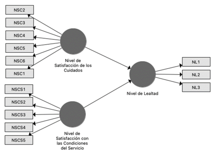La satisfacción puede ser considerada a partir de dos variables, los cuidados y las condiciones del servicio. Los cuidados abordan la amabilidad del personal, la confianza que le transmite el personal, la preparación del personal, el interés del personal, el tiempo que le dedicó el personal y utilidad del cuidado brindado. Por otro lado, las condiciones abarcan las instalaciones, los materiales, los trámites para facilitar el acceso, la efectividad administrativa y los servicios oportunos. En cambio, la lealtad se concibe como el cumplimiento de expectativas, preferencia y recomendación del servicio (Donabedian 2005; Numpaque-Pacabaque & Rocha-Buelvas, 2016; Vera & Trujillo, 2018).