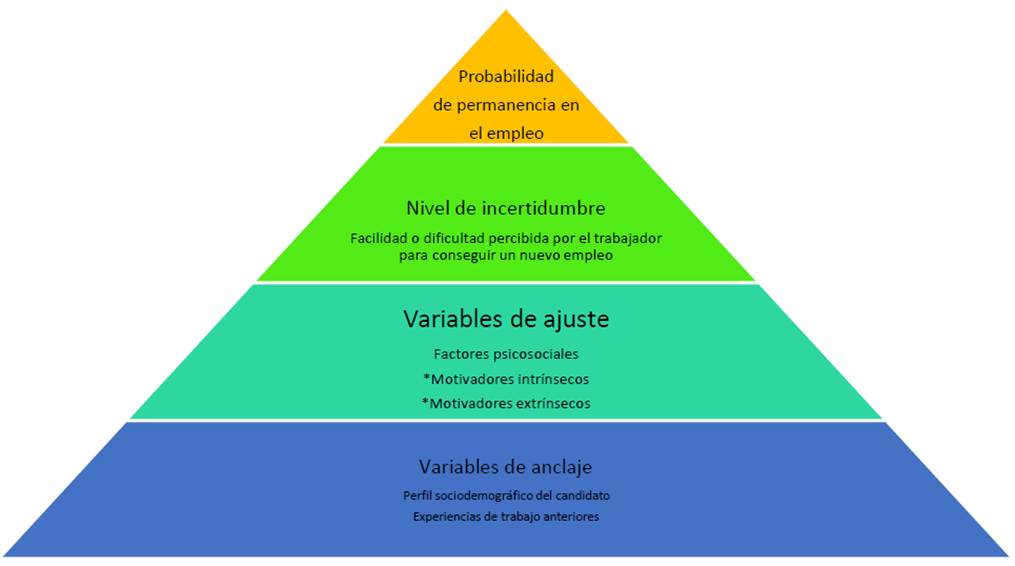Lo anterior nos lleva a considerar que, al tomar la decisión de cambiar de empleo, se construye un marco de referencia basado en la experiencia del empleo actual y los empleos anteriores. A priori, la decisión se basaría en el anclaje que proporcionan las experiencias pasadas, y conforme transcurre el tiempo, se realiza un ajuste que consiste en la adaptación de las expectativas a los resultados.