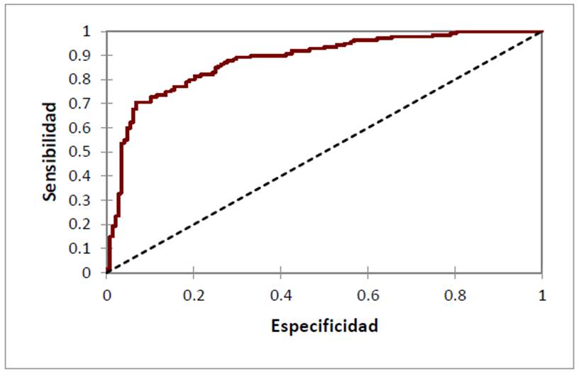 Para evaluar la bondad de ajuste del modelo se considera el coeficientes de determinación R² que resume la proporción de varianza en la variable objetivo atribuible a las variables predictores (independientes); y para determinar si el modelo es un clasificador adecuado, se utilizó una muestra de aprendizaje supervisado para calcular el área bajo la Curva ROC (Receiver Operating Characteristic), y la matriz de confusión. Ambas se construyen a partir de los estadísticos sensibilidad (verdaderos positivos/total de valores positivos) y especificidad (verdaderos negativos entre total de valores negativos).