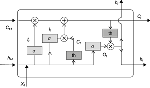 Juergen Schmidhuber (1997) introduced the so-called LSTM units, which are managed in memory blocks with self-connections. Their advantage lies in their ability to store the temporal state of the network. LSTM cells have special multiplicative units called gates, which control the data flow. The components of memory blocks include the input gate (it), which controls the flow of input activations into a cell; the output gate (ot), where the flow of output from the cell’s activation is controlled; and the forget gate (ft), where the input information is filtered (xt) and the previous output is filtered (Fig. 1).