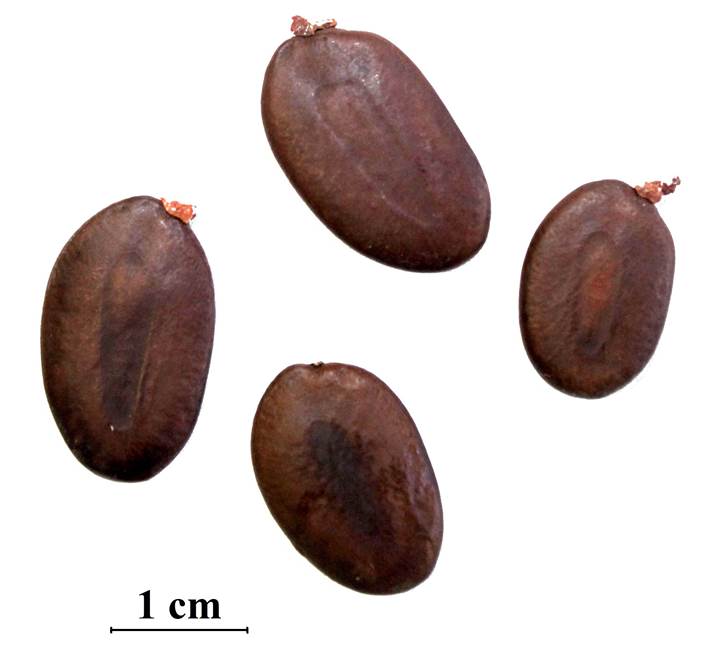 Figura 3: Morfología externa de semillas de Peltogyne mexicana Martínez en la localidad de Tierra Colorada, municipio Juan R. Escudero, Guerrero, México.