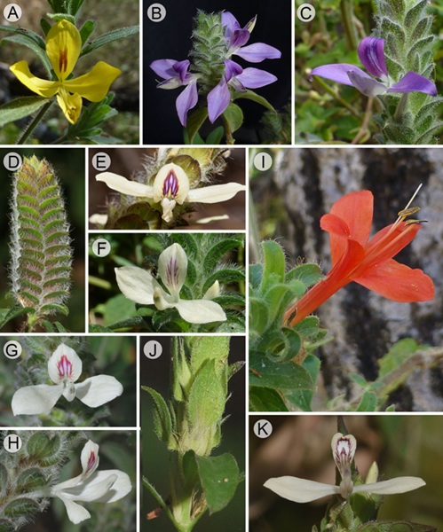 In general, seasonality in Edomex is divided into wet and dry climatic periods with ca. 1 month-long transitional periods between them. November through April are dry months, June through September have considerably more rainfall and are wet months, and May and October are transitional periods between the wet and dry periods (e.g., INEGI, 2024). Among the 55 native species in Edomex for which flowering collections have been made, 23 flower only during the dry season (sometimes including one transitional month as well), eight flower primarily during the dry season (depending on the number of collections, sometimes including one or two wet month(s) plus sometimes transitional months), six flower more or less equally during both seasons, six flower exclusively during the wet season, and eight flower primarily during the wet season (sometimes including a transitional month and/or a dry month). Two species are not known from flowering collections (Ruellia foliosepala and Ruellia intermedia) and another two were collected in flower only once during the transitional months (Justicia sphaerosperma and Ruellia oaxacana). All of the naturalized species with more than one collection flowered in both wet and dry seasons.