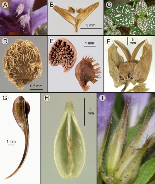 The key to genera and species of Acanthaceae includes measurements and characteristics for plants from Edomex and from nearby states. Some morphological characters of leaves, flowers, fruits, seeds, and pollen utilized in the key are imaged in Appendix 1. Some morphological attribute(s) is/are provided among these figures for all species except Pseuderanthemum standleyi Leonard. Pollen preparation techniques and terminology generally follow those described by Daniel (1998; 2024). Grains were imaged in the scanning electron microscopy lab at the California Academy of Sciences using a Hitachi SU3500 SEM microscope (Tokyo, Japan), as well as two former SEM instruments from other manufacturers, for which no further technical or provenance information is available.