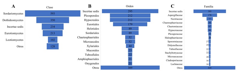 Cabe subrayar que la mayor parte de la información recopilada proviene de artículos publicados en revistas arbitradas, por lo que se asume que las determinaciones taxonómicas han sido revisadas por especialistas en la materia. Así mismo, es importante señalar que la condición saprofítica de las especies incluidas en el análisis se basa en la información proporcionada por los autores en los artículos (tipo de sustrato en el que fueron encontrados). También considerar que varias de las especies reportadas como saprobias, a su vez, han sido encontradas como endófitas o parásitas. Existen evidencias de que ante cambios bióticos y abióticos los hongos tienen la capacidad de modificar su modo de nutrición, de tal forma que especies endófitas y parásitas pueden persistir como saprobias tras la muerte del hospedero colonizado; y de igual forma, una especie saprobia puede adoptar un comportamiento endófito o parasítico (Zhou y Hyde, 2001; Hyde et al., 2007; Wrzosek et al., 2017).