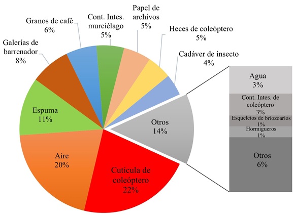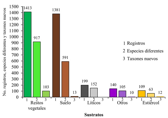 Con base en el tipo de sustrato, los micromicetos registrados se agruparon en las siguientes cinco categorías: