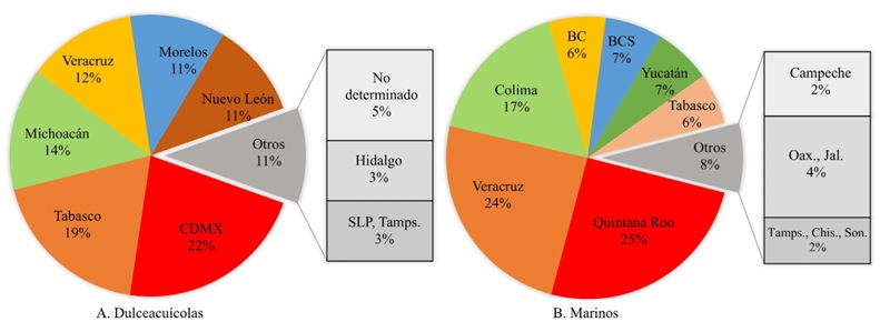 Únicamente fueron incluidos registros de micromicetos filamentosos saprobios identificados a nivel de especie, ya sea mediante caracteres morfológicos o moleculares. Se consideraron como micromicetos o especies microscópicas a aquellas que producen esporóforos de un tamaño máximo de 1 mm de altura, siguiendo el criterio establecido por Gams (1992). Por su parte, la condición saprofítica se basó en la información proporcionada en cada documento revisado, excluyéndose micromicetos asociados a tejidos vegetales o animales vivos. Solo se consideraron registros de colectas en territorio mexicano que incluyeran información sobre la entidad estatal, localidad, ecosistema, tipo de vegetación y tipo de sustrato.