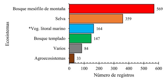 Entidades No. registros Especies diferentes Géneros diferentes Especies nuevas Géneros nuevos