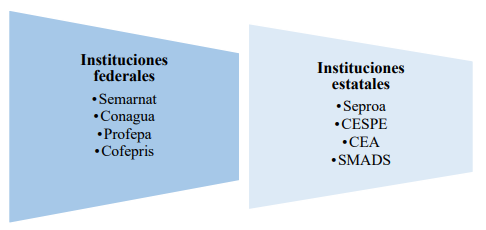 Fuente: Elaboración propia con base en información de Semarnat (2022b), Conagua (2022a), Profepa (2022), Cofepris (2022), Seproa (2022), CEA (2024), CESPE (2022) y SMADS (2024).