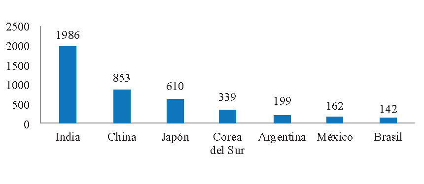 Figura 1 Los siete países no occidentales con mayor número de largometrajes producidos en 2016