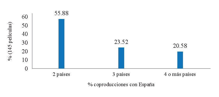Figura 8 Coproducción con España. Número de países en la coproducción