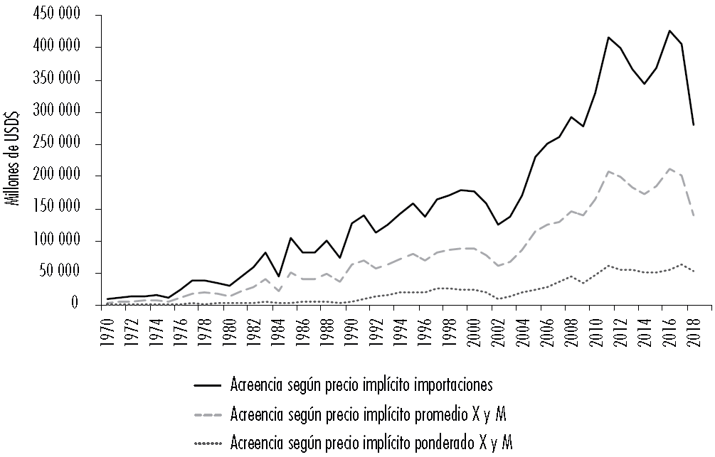 Figura 5 Acreencia ecológica anual según precios implícitos (1970-2018)