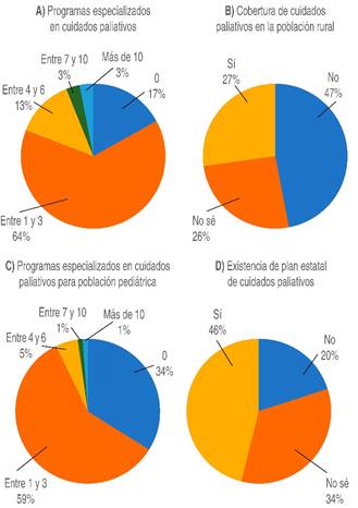 La educación y capacitación del personal sanitario es determinante para brindar una atención paliativa de calidad16. Preocupa el reducido número de egresados de facultades de medicina y enfermería del país que durante la licenciatura reciben capacitación para brindar estos servicios; la misma tendencia sigue la carencia de personal especializado, destacando el elevado número de encuestados que ignora su existencia en su entidad.