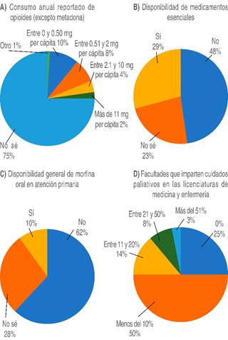 El desconocimiento de dos tercios de los participantes respecto a la disponibilidad de medicamentos esenciales para el alivio del dolor y control de otros síntomas puede indicar, por una parte, la inexistencia de programas de actualización y capacitación en este relevante tema; por otra, escasa disponibilidad de analgésicos opioides y la sobrerregulación existente; que en su conjunto evidencian un control eficaz del dolor en la mayoría de las entidades federativas. Otra barrera común es la complejidad de procesos administrativos y escasez de recursos económicos de los habitantes de áreas rurales que dificultan su movilidad a los distantes puntos de atención ante la carencia rural de estos servicios.