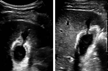 La ecografía abdominal puede ser efectiva mediante la identificación de contenido hiperecogénico en la vesícula, líquido libre perivesicular y solución de continuidad de la pared vesicular, pared vesicular hipoecoica, edematosa engrosada, colapso a pesar de ayuno prolongado se correlaciona con colecistitis aguda.4