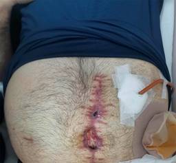 Posteriormente, el paciente experimentó una dehiscencia de la anastomosis intestinal, lo que puede llevar a complicaciones como fístulas, peritonitis y sepsis de origen abdominal. La incidencia de esta complicación está influenciada por el sitio anatómico resecado, la flora microbiana, el aporte vascular y la tensión en la anastomosis. Se estima que la dehiscencia en el intestino delgado aumenta en un 15% la tasa de mortalidad, según lo mencionado por Campos y asociados.7