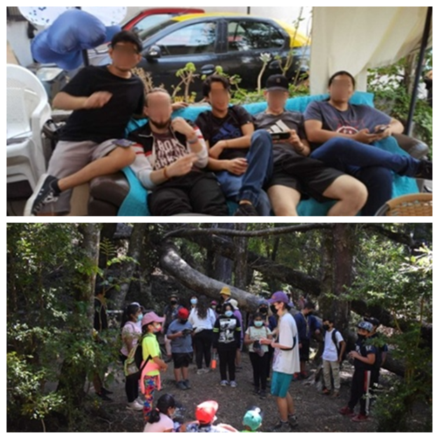 Por último, en la categoría “grupo de pares” se reúnen aquellas imágenes que incluyen a sus grupos de referencia o pertenencia (colectivo de activistas, grupos de amigos, compañeros de curso) y les permitió dar cuenta de gustos y actividades compartidas (scouts, fútbol, beisbol, etc.). Se trata de los(as) pares a quienes reconocen como “nosotros”, y por tanto vehiculizan pertenencias a un lugar u otro, así como a algún aspecto en particular.