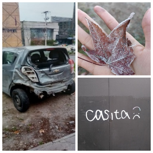 Respecto a la imagen del auto chocado (véase Imagen 15), Ana María (17 años, llegada a los dos años, nacida en Brasil, estudiante de educación media) dice: “Es que acá en Chile tengo más vivencias, pasé por momentos dolorosos y me sentía como muy rota, como acá en el auto. Como que estaba buscando dónde encajar, me forcé mucho y pasé por una etapa muy depresiva” (Fotovoz #2). De manera que los recuerdos de experiencias difíciles constituyen un lazo afectivo al lugar que genera pertenencia.