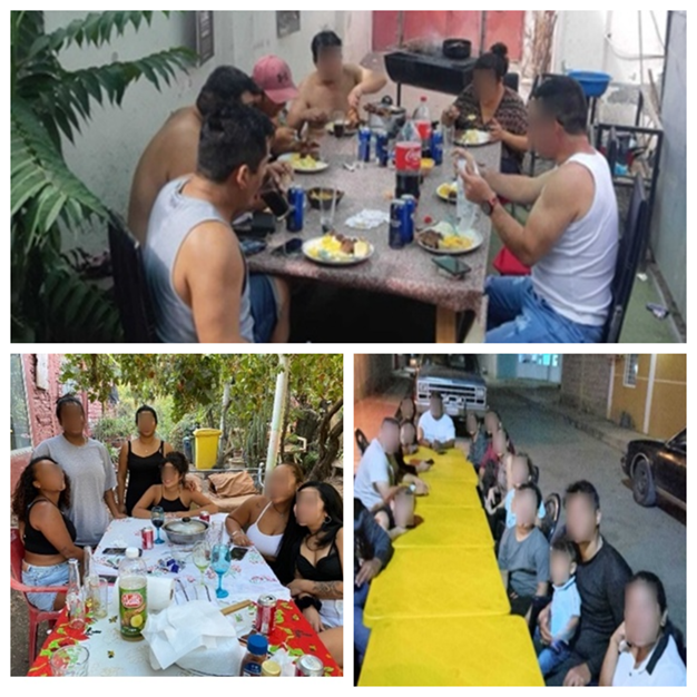 Respecto a las imágenes categorizadas como “familia” (véase Imagen 6), éstas refieren a vínculos significativos en la familia extensa y nuclear, como un espacio de pertenencia. Estas imágenes evocan tanto afectos de cariños y cercanía, como recuerdos de experiencias negativas. La categoría “familia” genera densidades relacionales importantes con la categoría de “comida” y con la de “lugares y situaciones”. La conjunción de estas tres se expresa en imágenes de familia extensa en origen reunida en torno a una mesa. Este es un recurso visual muy utilizado, para dar cuenta de la conexión con el lugar de procedencia que evoca recuerdos tanto de su vida antes de emigrar como a viajes de visita.