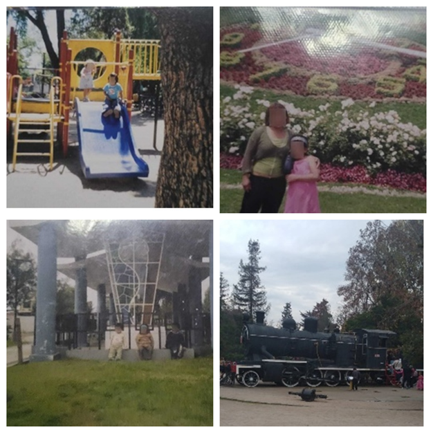 La categoría de “lugares o situaciones” fue ampliamente utilizada como recurso visual y narrativo. En ellas confluyen imágenes de vida cotidiana en la ciudad y lugares visitados en la infancia, tales como plazas, juegos u otros espacios públicos. Estos últimos evocan un recuerdo de infancia para dar cuenta de sus conexiones afectivas a lugares tanto de allá como de acá.
