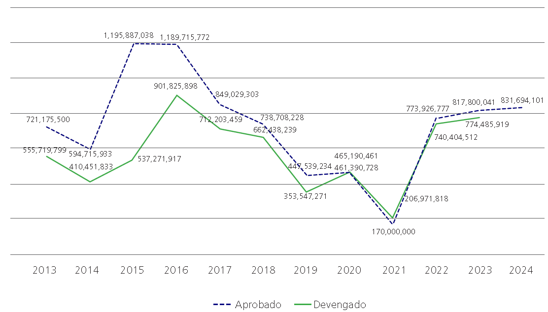 | Ejercicio fiscal | Aprobado | Devengado | % Devengado |