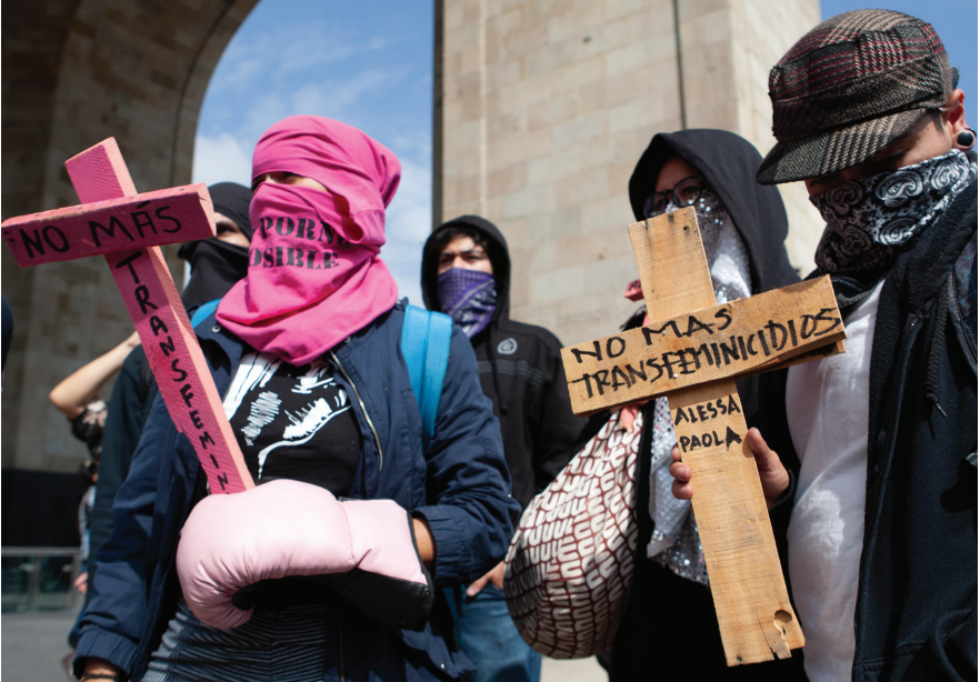 Prometeo Lucero Trabajadoras sexuales trans, activistas e integrantes de la diversidad LGBTQ+ protestan por el asesinato de Paola Buenrostro en la Ciudad de México, 20 de octubre de 2016.