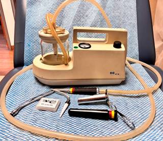 Se utilizó un ligador Dewimed, hemorrhoidal bands de silicón Dewimed, con equipo de succión ATMOS MC16 (Figura 1). Se prefiere el uso de bandas de silicón con el objeto de disminuir al máximo posibles reacciones alérgicas al colocar bandas de látex.