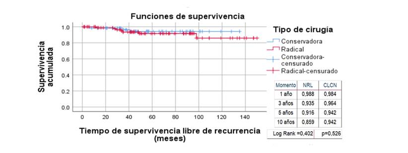 Limita el presente estudio la baja ocurrencia de fallecidos para el análisis de supervivencia según tipo de cirugía y el tiempo desigual de seguimiento de los casos. Ambos aspectos se tendrán en cuenta en investigaciones futuras.