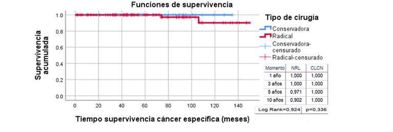 Figura 2 Supervivencia cáncer específica de pacientes con carcinoma renal según tipo de cirugía