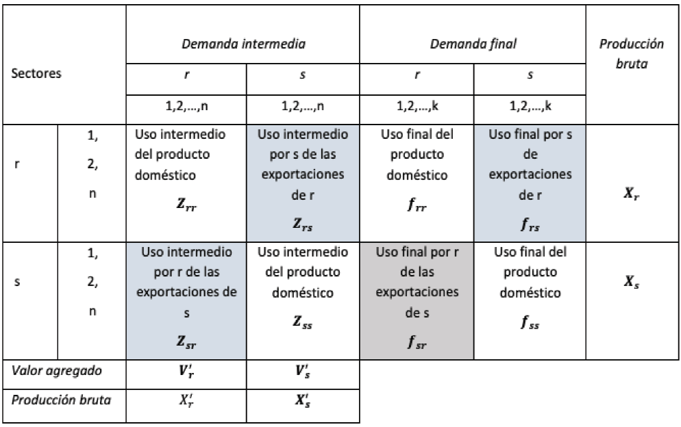Gráfica 1 Estructura de la tabla bilateral del país r y país s