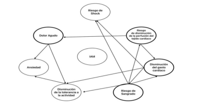 Por consiguiente, se evidenció que las etiquetas diagnósticas NANDA-I riesgo de disminución de la perfusión del tejido cardíaco y dolor agudo coincidieron con autores previamente descritos 21-22 los cuales concuerdan en las intervenciones expuestas anteriormente, como lo son; en el manejo del dolor, vigilancia hemodinámica con toma de ECG de 12 derivaciones, toma de muestras, manejo de medicación en este caso la terapia fibrinolítica, aporte de oxígeno suplementario si se requiere y muy importante el reconocimiento por parte del personal de enfermería sobre efectos adversos, secundarios de medicación y posibles riesgos con la intervención. En cuanto al riesgo de disminución del gasto cardiaco no se encontró similitud con otros autores, lo cual cobra relevancia en este estudio debido a que la arteria principal del corazón presenta una oclusión total lo que conlleva a una disminución de la irrigación al ventrículo izquierdo y, por ende, su disminución en la contractilidad cardiaca, afectando de manera significativa el gasto cardiaco.