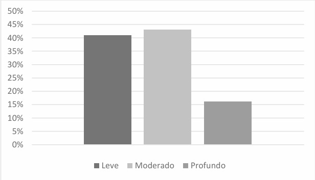 Los estudiantes tuvieron un promedio de edad de 22 años (DE=3), la distribución por sexo fue de 78 % femenino y 22 % masculino. Se observó que el 43.6 % de los participantes presentó un nivel moderado de burnout, mientras que el 41 % un nivel leve y el 15.3 % restante experimentó un grado profundo de este síndrome, (Gráfico 1).