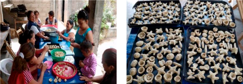 Indicándonos que estas tres preparaciones son las que no deben de faltar y se realizan en grandes cantidades, el pan es completamente artesanal hecho en horno de barro, para el caso del puxinú, consiste en un dulce elaborado con semillas de calabaza y el ponzoqui es una mezcla de masa con panela (piloncillo), en forma de diferentes figuras realizado a mano y horneado.